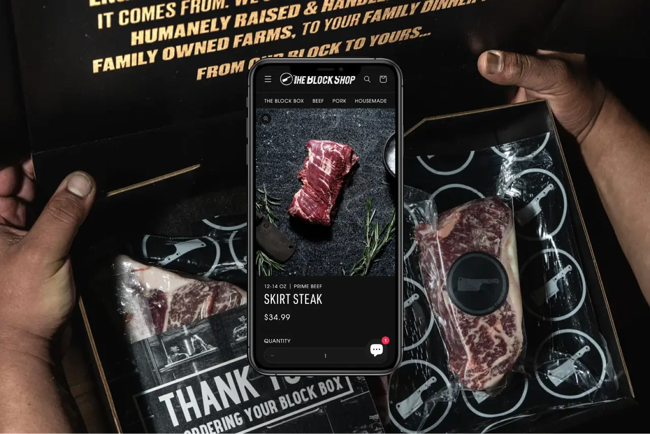 E-commerce rebuild and Shopify migration for The Butcher's Block, a restaurant and butcher shop in Long Branch, NJ. Separate domains, stalled subscriptions, and no inventory management were consolidated into a single Shopify setup—styled to match their restaurant menus and documented for independent operation.